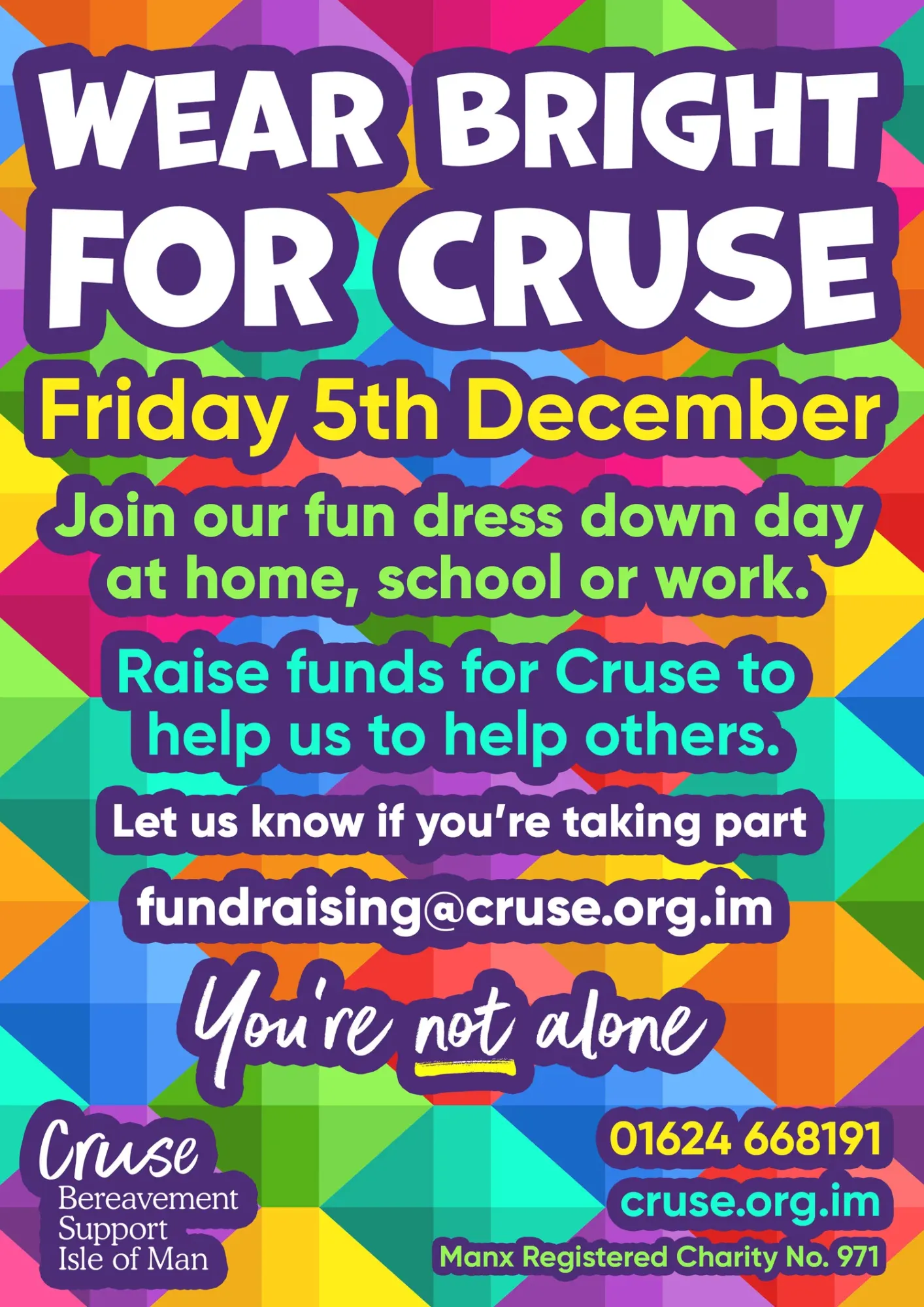 We're encouraging everyone on the Island - schools, companies, social groups, everyone - to take part in our Wear Bright for Cruse dress-down day on Friday 5th December 2025.